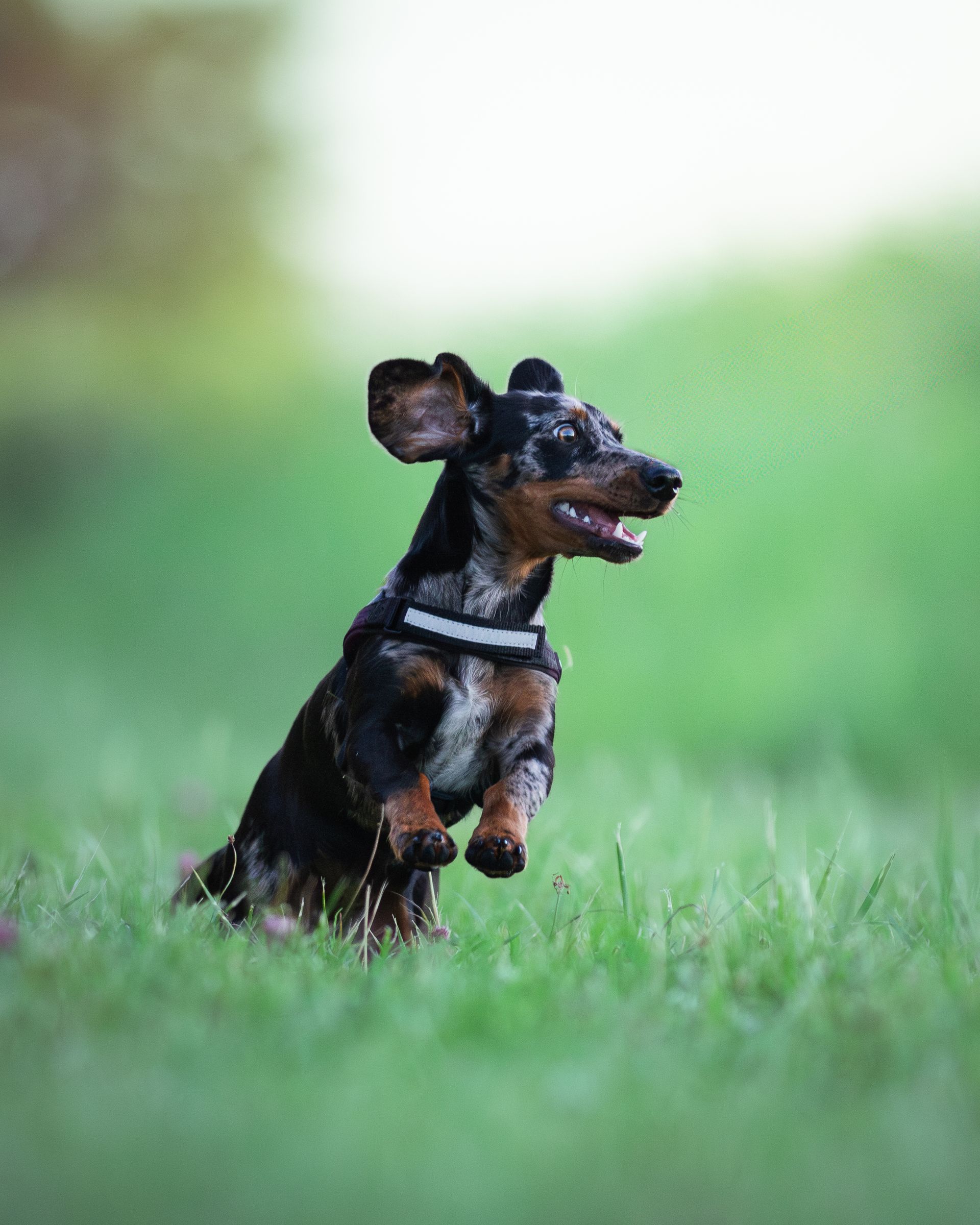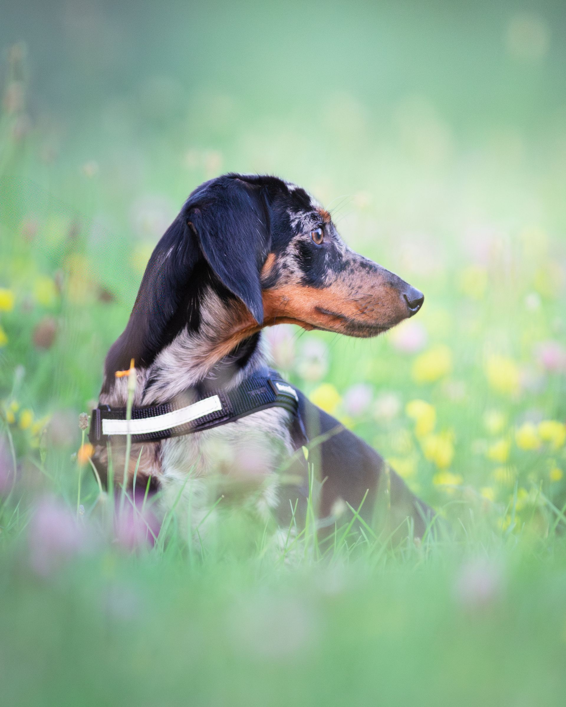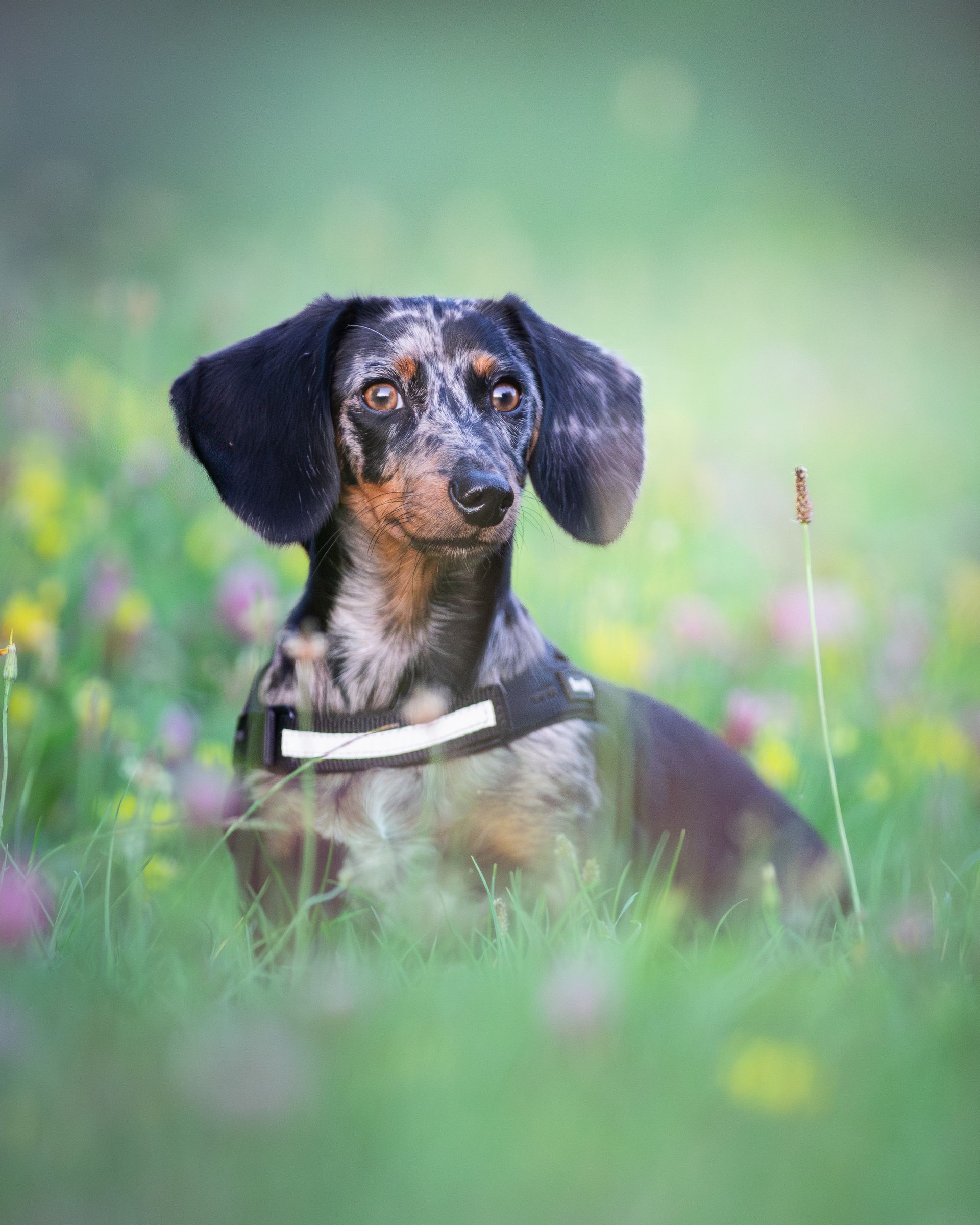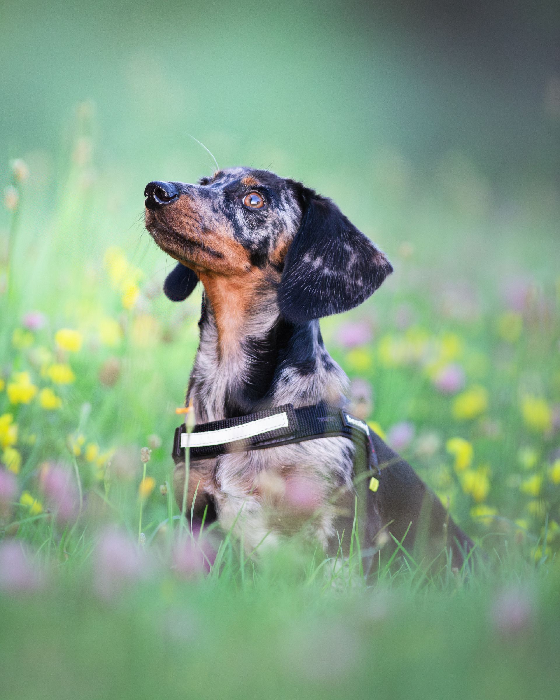 Hij heeft een aantal mooie foto's van mijn puppy gemaakt in een mooi natuurgebied.